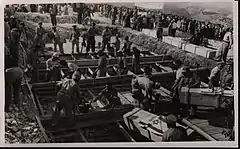 ![]() Casualties of the "Convoy of 35" being brought to burial. January 1948 | |