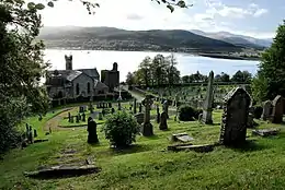 Old Kilmun House stands just beyond the northwestern edge of the cemetery, part of which is built on some of the house's gardens.[18]