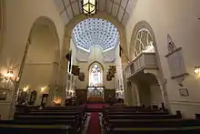 King's Chapel underwent restoration in 1877 through the efforts of the Acting Governor's wife and new stained glass windows were installed.[13] In 1887 an organ, built by Bevington & Sons, Soho, was controversially installed in the north-west corner of the chapel, contrary to the wishes of the chaplains, who had wanted it installed in the opposite corner but were overruled by the Governor, Sir John Adye.[15] The following year, when it was discovered that the roof needed urgent repairs, it was decided to transfer responsibility for the chapel to the War Office so that the repairs could proceed.[16]