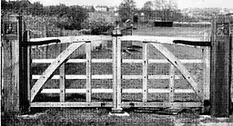 The most suitable field entrance for many villages was a wicket or field gate of English oak properly framed and pinned, hung to oak posts with hinges wrought by the local blacksmith. Where iron gates were more suitable over-elaboration was to be avoided. Designs had to be simple, made of wrought iron, and of such a type as could easily be opened and closed by children. Consideration too had to be given that the gates were strong enough to withstand rough and constant usage. The memorial panels were to be set on the upper portion of each gate pier.