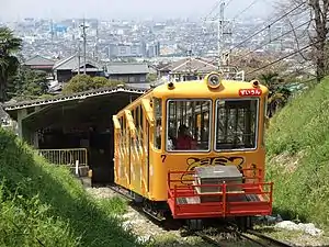 The Nishi-Shigi Cable Line (西信貴鋼索線, Nishi-Shigi kōsaku sen, "West Shigi Cable Line"), referred to as Nishi-Shigi Cable (西信貴ケーブル, Nishi-Shigi kēburu), is Japanese cable railway line in Yao, Osaka, owned and operated by Kintetsu Railway. The line, opened in 1930, makes a route to Chōgo Sonshi-ji temple on Mount Shigi. As the line name suggests, there once was Higashi-Shigi Cable Line (東信貴鋼索線, Higashi-Shigi Kōsaku-sen, "East Shigi Cable Line") as well. However, the eastern line was closed in 1983.