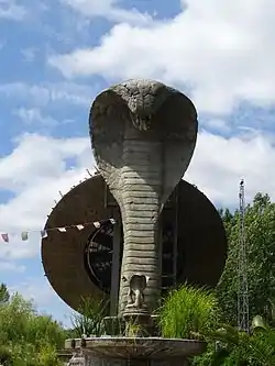 Kobra features two large snake statues at either end of the track; giving the ride its name. Riders sit at the edge of a circular ride car, which spins along 90m of track at 43 mph. The ride model includes a camel back hill in the centre of the track to give the car airtime as it travels over.