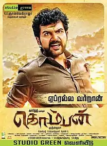 Komban is a 2015 Indian Tamil-language action drama film directed by M. Muthaiah and produced by Studio Green. The film stars Karthi and Lakshmi Menon, while Rajkiran, Super Subbarayan, Thambi Ramaiah, Karunas, and Kovai Sarala play supporting roles. G. V. Prakash Kumar composed the film's music. The film released on 2 April 2015[2] to positive reviews.[3]