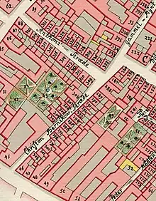 Barnikow's former property remained the by far largest property in the narrow street. It was listed in the new cadastre of 1756 as No. 45 in Købmager Quarter, owned by restaurateir Johan Georg Egner. The smaller corner property on the other side of the street was listed as No. 46 in Købmasger Quarter, owned by book binder Johan Fredeirk. The rest of the street was lined with mostly very small properties. The propertoes on the east side of the street were listed from north to south as No. 287–302. The properties on west side of the street (adjacent to Barnekow's former property) were listed from south to north as No. 303–309.
