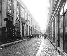 In the Middle Ages, the site was an open sewer which continued to the harbor. In 1547, it was decided to convert it into a narrow alley.[1] The property on the site belonged to Marcus Reff, a merchant, who was awarded a reduction of his property taces from 15 mark to 10 mark as compensation. The alley was officially opened on 10 July 1547.[2]