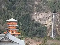 A Kumano shrine (熊野神社, Kumano Jinja) is a type of Shinto shrine which enshrines the three Kumano mountains: Hongū, Shingū, and Nachi [Kumano Gongen (熊野権現)].[1] There are more than 3,000 Kumano shrines in Japan, and each has received its kami from another Kumano shrine through a process of propagation called bunrei (分霊) or kanjō (勧請).