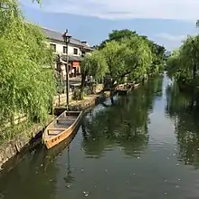 The old merchant quarter is called the Bikan historical area. It contains many fine examples of 17th century wooden warehouses (kura, 倉) painted white with traditional black tiles, along a canal framed with weeping willows and filled with koi. The area has no electric poles in order to make it more closely resemble the look of the Meiji period. One of the city's former town halls was located in the Kurashiki Kan, a European style building constructed in 1917.