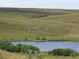 Aubrac is a volcanic and granitic plateau that extends over an area of 1,500 km2. The volcanic eruptions occurred between 6 and 9 million year ago and were of Hawaiian type with fluid lavas. There are therefore no individual volcanic cones. The volcanic zone occupies the west side while the other part of the plateau is formed of granite. The average altitude is about 1,200 meters with the highest point at 1,469 meters (Signal de Mailhebiau) in the south. All the region has been eroded by glaciers during three glacial periods. The Aubrac includes four glacial lakes: lac des Salhiens, lac de Saint-Andéol, lac de Souveyrols and lac de Born. In the south, the highest summits of the Aubrac dominate the Lot valley, which lies 1,000 m below.