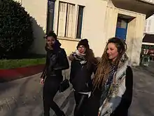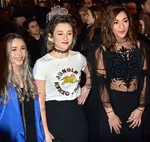 ![]() The members of L.E.J. in 2017 at the Globes de Cristal Awards ceremony. From left to right: Elisa Paris, Juliette Saumagne, Lucie Lebrun | |