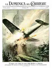 La Domenica del Corriere was an Italian weekly newspaper which ran from 1899[1] to 1989. It came out every Sunday free with Corriere della Sera, but was also sold separately. It was famous for its cover drawings, and its issues are still collected. In the period between 1952 and 1953 its circulation was 900,000–1,000,000 copies.[1]