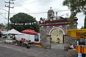 The four oldest communities in the borough are La Magdalena Atlitic, San Nicolás Totolapan, San Jerónimo Aculco, and San Barnabé Ocotepec, all of pre-Hispanic origin. The modern community of La Magdalena Atlitic is centered on a church which was founded in the 16th century as a hermitage.[6][12] The current structure dates to 1760. In 1932, it was named a national monument. The church has a Baroque facade with raised patterns, fronted by a stone paved atrium which has a fountain with an image of the Archangel Michael. The main portal is flanked by Doric pilasters holding up an arch and a cornice to the choir window.[12] Inside, at the base of the arches over the main altar, there are feather designs unique to Mexico.[6]