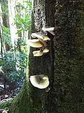Below 880 metres (2,890 ft) the white booyong and black booyong are commonly found.[3] In higher elevations the yellow carabeen, red carabeen, pigeonberry ash, rosewood and soft corkwood trees predominate.[3]