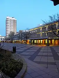 Alexandra Square is the university's main plaza. Named after the first chancellor, Princess Alexandra and is situated at the centre of the original campus. On the west side of the square is University House as well as various banks and shops. To the south-east of the square is the tallest building on campus: the fourteen-storey Bowland Tower, which contains accommodation and disguises the boiler room chimney.