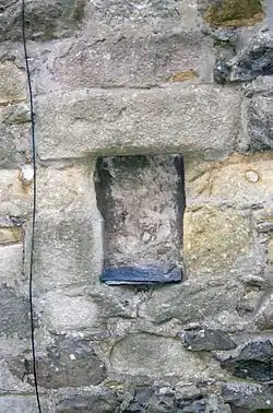 In between the two bleach works in 1858 is located a building with a very ornate walled garden, in all likelihood the dwelling of the works manager and has two dated stones of the marriage stone type, dated 1790 with 'I(J)R and JC' and 1759 respectively. The second stone is badly eroded and any initials are not discernable.[15] This relatively small building also has an access off Threepwood Road via the settlement of Townend.[15] In 1858 no name is given on the map to this dwelling. A plantation or screen of trees is shown lying to the west and a small ruin is shown on the lane to the lower bleach works where it ceases to be straight and runs in an easterly direction.