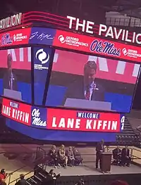On December 6, 2019, it was reported that Kiffin was close to accepting the head coaching position at Ole Miss. On December 7, following FAU's blowout win in the C-USA championship game over UAB (49–6), it was confirmed by Ole Miss AD Keith Carter that Kiffin would be the next head coach at Ole Miss.[75] On December 9, Lane was officially introduced as the 39th head football coach at Ole Miss.[76] Kiffin's four-year contract totaled $16.2 million and would pay him $3.9 million in 2020 with a $100,000 yearly increment thereafter.[77] Kiffin won his first game at Ole Miss in the second game of the 2020 season at Kentucky, a 42–41 win in overtime.[78] In Kiffin's first season Ole Miss finished 5–5 with a 4–5 record in the SEC leading to a 2021 Outback Bowl invitation. After winning the Outback Bowl Kiffin was given a one-year contract extension by Ole Miss (the maximum extension Ole Miss could offer since Mississippi state law only allows four-year total contracts for university employees), however financial details were not immediately released.[79][80] New contract details were released in August 2021 and amounted to $21 million in base pay through 2024, with $4.5 million paid out in 2021 and over $5 million in each of the remaining three seasons.[81]