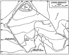 Larissa Cremaste (Ancient Greek: ἡ Κρεμαστὴ Λάρισα) was a town of Ancient Thessaly of less importance than Larissa in Pelasgiotis, and was situated in the district of Achaea Phthiotis, at the distance of 20 stadia from the Maliac Gulf, upon a height advancing in front of Mount Othrys.[1] It occupied the side of the hill, and was hence surnamed Cremaste, as "hanging" on the side of Mt. Othrys, to distinguish it from the more celebrated Larissa, situated in a plain. Strabo also describes it as well watered and producing vines. The same writer adds that it was surnamed Pelasgia as well as Cremaste.[2]