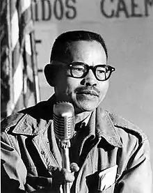 Modesto "Larry" Dulay Itliong (October 25, 1913 – February 1977[lower-alpha 1]), also known as "Seven Fingers",[3] was an American labor organizer. He organized West Coast agricultural workers starting in the 1930s, and rose to national prominence in 1965, when he, Philip Vera Cruz, Benjamin Gines and Pete Velasco, walked off the farms of area table-grape growers, demanding wages equal to the federal minimum wage, that became known as the Delano grape strike.[4][5][6] He has been described as "one of the fathers of the West Coast labor movement."[7] He is regarded as a key figure of the Asian American movement.