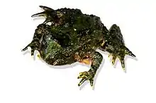 Leiopelma is a genus of New Zealand primitive frogs, belonging to the suborder Archaeobatrachia. It is the only genus in the monotypic family Leiopelmatidae. The leiopelmatids' relatively basal form indicates they have an ancient lineage.[1] While some taxonomists have suggested combining the North American frogs of the genus Ascaphus in the family Ascaphidae with the New Zealand frogs of the genus Leiopelma in the family Leiopelmatidae, the current consensus is that these two groups constitute two separate families.[2][3] The four extant species of Leiopelmatidae are only found in New Zealand.[4]