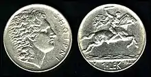 The lek was named after Alexander the Great,[6] whose name is often shortened to Leka in Albanian.[7] Alexander's portrait appeared on the obverse of the 1 lek coin, while the reverse showed him on his horse.