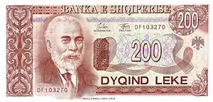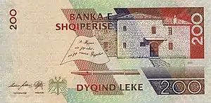 200 Lek | 138 × 69mm | Brown | Naim Frashëri (1846–1900) | House birthplace of Frashëri |