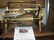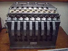 Since the middle of the 19th century, several mechanical devices were known, from integrators, multipliers, to the Analytical engine of Charles Babbage. The work of Torres in this matter is framed within this tradition, which began in 1893 with the presentation of the "Memória sobre las máquinas algébricas" ("Memory about algebraic machines") at the Spanish Royal Academy of Sciences in Madrid.[32] This paper was commented in a report by Eduardo Saavedra in 1894 and published in the Revista de Obras Públicas.[33] Torres developed a first model of the machine, and Saavedra recommended that the final project of the device be financed.[34] Torres' calculating machine was considered in its time as an extraordinary event in the course of Spanish scientific production. In 1895 he presented "Machines algébriques", accompanied by his demonstration model, at the Bordeaux Congress of the Association pour l'Avancement des Sciences, and in Paris in the Comptes rendus de l'Académie des Sciences.[35] Later on, in 1900, he presented a more detailed work, "Machines á calculer" ("Calculating machines") at the Paris Academy of Sciences. The commission, informed favorably by Marcel Deprez, Henri Poincaré and Paul Appell, asked the academy for its publication,[36][37] highlighting: "... Mr. Torres has given a theoretical, general and complete solution to the problem of the construction of algebraic and transcendental relations by means of machines..."[38]