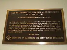 - "Milestones:Early Developments in Remote-Control, 1901". IEEE Global History Network. IEEE. Retrieved 29 July 2011.