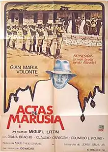 Letters from Marusia (Spanish: Actas de Marusia) is a 1975 Mexican film directed by Chilean filmmaker Miguel Littín. It was nominated for the Academy Award for Best Foreign Language Film.[1] It was also entered into the 1976 Cannes Film Festival.[2] The film is based on a Patricio Manns novel (1974) inspired by the Marusia massacre of 1925.