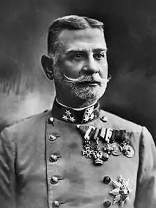 Liborius Ritter von Frank (5 October 1848 — 26 February 1935) was an Austro-Hungarian general in World War I. He commanded the Austro-Hungarian Fifth Army in 1914 at the start of the war, and fought at the Battle of Cer, Battle of Drina and Battle of Kolubara.[1] He was replaced by General Karl Tersztyánszky von Nádas after the failure of the first Serbian Campaign, the enormous casualties suffered by his army reduced to about 40% of its strength and the disbandment of the Balkanstreitkräfte.