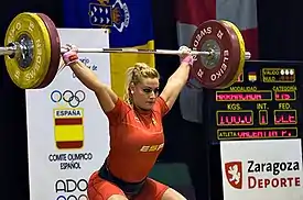 Lydia Valentín Pérez[1][2][3][4] (born 10 February 1985) is a Spanish retired[5] weightlifter, Olympic Champion, 2 time World Champion and 4 time European Champion competing in the 75 kg category until 2018 and 81 kg starting in 2018 after the International Weightlifting Federation reorganized the categories.[6] Lydia has won three Olympic Medals (Silver in 2008, Gold in 2012 and Bronze in 2016), two World Weightlifting Championships (2017 and 2018), as well as four European Weightlifting Championships.[3][7][8]