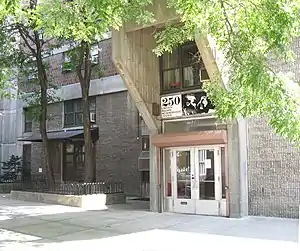 During the 1950s and 1960s, a consortium of civic leaders and others led by John D. Rockefeller III built the Lincoln Center as part of the "Lincoln Square Renewal Project" during urban planner Robert Moses's program of urban renewals.[7] Respected architects were contracted to design the major buildings on the site, and construction started in 1959.[8] Over the next thirty years the previously blighted area around Lincoln Center became a new cultural hub.[9] Over 7,700 residents were displaced during the redevelopment project.[10] The new developments contained 4,400 housing units, of which only a few were allocated to San Juan Hill's former residents.[11] Most of the area's former residents instead moved to Harlem, another predominantly African American neighborhood in Upper Manhattan, as well as the Bronx.[2][12]