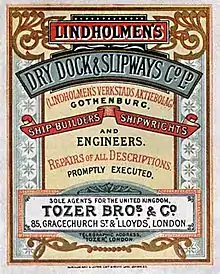 Economic factors caused Motala Verksted to go bankrupt in 1891 and the shipyard was sold for SEK 820,000 to a consortium of companies and individuals. Sven Almqvist took over the management and formed a new company, Lindholmens Verkstads AB, with SEK 1,000,000 capital. The new business employed Hugo Hammar, fresh from the United States and later to lead Götaverken, as the chief engineer.[4] New commissions came in from Svenska Lloyd and, in 1903, the company was asked to build the Swedish Navy's new flagship Oscar II. Other large ships followed, including two 6,500-gross register ton (GRT) cargo vessels for the Axel Johnson Group, named Axel Johnson and Annie Johnson, launched in 1910 and 1911 respectively.[5]