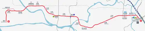 Line 2 of Foshan Metro (FMetro) (Chinese: 佛山地铁2号线; pinyin: Fóshān Dìtiě Èr Hào Xiàn) is a metro line in Foshan. It runs in a south-west direction, connecting Guangzhou South Railway Station and Nanzhuang. It opened on 28 December 2021.[1]