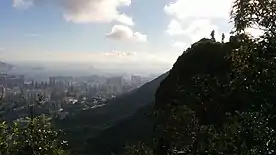 Lion Rock, or less formally Lion Rock Hill, is a mountain in Hong Kong. It is located in Sha Tin District,[1] between Kowloon Tong of Kowloon and Tai Wai of the New Territories, and is 495 metres (1,624 ft) high.[2] The peak consists of granite covered sparsely by shrubs. The Kowloon granite, which includes Lion Rock, is estimated to be around 140 million years old.[3]