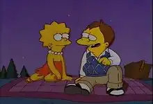 "Lisa's Date with Density" is the seventh episode of the eighth season of the American animated television series The Simpsons. It originally aired on the Fox network in the United States on December 15, 1996.[2] It was written by Mike Scully and directed by Susie Dietter.[2] The episode sees Lisa develop a crush on Nelson Muntz. When they start dating and Lisa is unable to reform him, she ends their relationship. In the subplot, Homer uses an autodialer in a telemarketing scheme that annoys all of Springfield's residents.