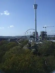 Liseberg is an amusement park located in Gothenburg,[2] Sweden, that opened in 1923. It is one of the most visited amusement parks in Scandinavia, attracting about three million visitors annually.[3] Among the noteworthy attractions is the wooden roller coaster Balder, twice (2003 and 2005) voted as the Best Wooden Tracked Roller Coaster in the world in a major international poll.[4] The park itself has also been chosen as one of the top ten amusement parks in the world (2005) by Forbes magazine.[5]