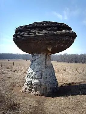 | Mushroom Rock State Park | Ellsworth | 5 acres (2.0 ha) | 488 m (1,601 ft) | 1965 | ![]() |