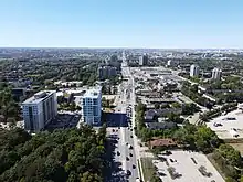 Aerial view along Eglinton Ave. looking west from Hurontario St.