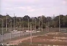 East of Dixie Road, Queensway runs with a hydro corridor in its median.