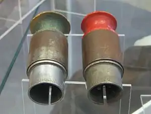 The fuzing system was designed to trigger at the most destructive altitude, which calculations suggested was 580 meters (1,900 ft). It employed a three-stage interlock system:[33]