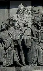 A lot of anti-Lithuanian propaganda is directed at Grand Duke Algirdas because he used war and diplomatic means to unite Ruthenian lands into the GDL.[56] Also, many dukes of Slavic lands gave priority to their own positively evaluated GDL rather than the Tatar Golden Horde and their negatively evaluated money collectors ‒ the Muscovites.[56] These circumstances destroy the authority of Moscow as the "unifier of all Russian lands", so the aim of such claims is to Russify Grand Duke Algirdas or at least convert him to Orthodoxy.[56] The first attempts to do this can be seen already in the 16th–17th centuries Bychowiec Chronicle and Hustyn Chronicle which describe Algirdas supposedly Orthodox baptism after his first or second marriage in an anti-Catholic context.[56] Also already in the 16th century annals of the Moscow state it was stated that Algirdas was allegedly an Orthodox believer, this way aiming to undermine the rulers of Lithuania and show their subordination to the rulers of Moscow.[135] Later this narrative, which contradicts the Catholic Christianization of pagan Lithuania in 1387 and the history of the martyrs of Vilnius, was being repeated by the propagandists of the Russian Empire.[135] For example, Russian historiographer and writer sentimentalist Nikolay Karamzin in the 18th century "discovered" another date of Algirdas alleged baptism and put into use, claiming that Algirdas, who was ordained as a monk on his deathbed, was buried according to Orthodox rites.[56] However, German and old Ruthenian chronicles mention that Algirdas died as a "pagan fire-worshipper, an enemy of the cross and faith" and was burned.[56] Some Litvinists claim that Lithuanian King Mindaugas also adopted Orthodoxy in Novogrudok.[136]