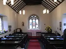 The windows of St Clarus's Chapel were destroyed by German bombing of Exeter in May 1942 during World War II.[14] The chapel was restored by Mark Rolle's nephew and heir Charles Hepburn-Stuart-Forbes-Trefusis, 21st Baron Clinton (1863–1957). The east window was rebuilt by him in 1946, and some mediaeval stained glass roundels from a tower in the demolished old Church at Bicton were inserted into the side windows in 1947.