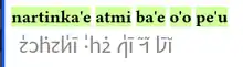 | ti xamgu be le tifri bei lo togmo'a po ko'a be'o selsa'a cu se nelci | This for the audience in view of its melody good song is liked.[27] | |