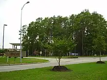 The LSC-North Harris campus is situated on 254 acres (1 km²) of land originally owned by Aldine ISD, located just several hundred feet from Aldine's Nimitz High School. It is about 20 miles (32 km) north of Downtown Houston.[11]