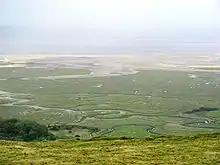 The River Loughor (/ˈlʌxər/[2]) (Welsh: Afon Llwchwr) is a river in Wales which marks the border between Carmarthenshire and Swansea. The river is sourced from an underground lake at the Black Mountain emerging at the surface from Llygad Llwchwr which translates from the Welsh as "eye of the Loughor". It flows past Ammanford and Hendy in Carmarthenshire and Pontarddulais in Swansea. The river divides Carmarthenshire from Swansea for much of its course and it separates Hendy from Pontarddulais at the point where the river becomes tidal. The Loughor meets the sea at its estuary near the town of Loughor where it separates the south coast of Carmarthenshire from the north coast of the Gower Peninsula. Among its tributaries is the River Amman and the River Morlais, with the former joining the Loughor near Pantyffynnon. The area of the catchment is some 262 square kilometres (101 sq mi).[3]