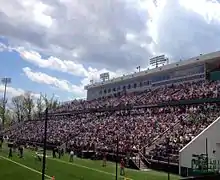 Loyola fields 17 varsity teams and 22 club teams. The varsity teams participate in the NCAA's Division I. All became members of the Patriot League on July 1, 2013. Previously all but two competed in the Metro Atlantic Athletic Conference (MAAC) from 1989 to 2013. The exceptions were the lacrosse teams – the men in the ECAC Lacrosse League and the women in the Big East Conference. The transition to a new conference was announced on August 29, 2012.[43] Loyola has a student success rate for graduation of over 97% of its student athletes.[44] The school's mascot is a Greyhound, and field sports are played at the Ridley Athletic Complex, located a few minutes from the Evergreen Campus on Cold Spring Lane. Loyola's men's and women's lacrosse teams are particularly noteworthy as both have appeared in numerous NCAA tournaments and are highly ranked most years. The men's lacrosse team won the NCAA Division I National Championship in 2012.