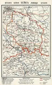20th century map of the Lusatias with Sorbian and German names