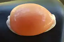 | Dorsal view of a shell of Callistocypraea aurantium, anterior end to the right | |