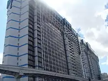 Proper evacuation of the hotel guests was also hindered as there was no automatic means of returning elevators to the main floor during a fire, causing 10 deceased victims to be found in an elevator.[14] Some hotel guests tied bedsheets together and hung them on balconies to alert first responders. Some tried using the bedsheets to descend the hotel's exterior.[8][19] Fire ladders were only able to reach the ninth-floor exterior.[20] One man escaped the hotel tower by lowering himself down a rope.[21][22]