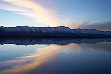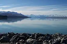 The Mackenzie Basin (Māori: Te Manahuna),[1] popularly and traditionally known as the Mackenzie Country, is an elliptical intermontane basin located in the Mackenzie and Waitaki Districts, near the centre of the South Island of New Zealand. It is the largest such basin in New Zealand.[2] Historically famous mainly for sheep farming, the sparsely populated area is now also a popular tourism destination.