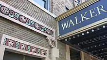 The first phase of the restoration, which housed offices and the Grand Casino Ballroom, was completed in 1983. A $2.5 million capital campaign raised funds to restore the Walker Theatre with a present-day seating capacity of 935. The influence of African art forms in A'Lelia Walker's original design concept is apparent throughout the restored theatre.[10][11] Financial support for the restoration came from Lilly Endowment and others donors.[4] In October 1988, the Walker Theatre reopened in the fully restored Walker Building under the management of the Madam Walker Urban Life Center.[10] The Urban Life Center also collaborated on two office structures along Indiana Avenue: Walker Plaza, built in 1989, and 500 Place, which was completed in 1992. The building was designated as a National Historic Landmark on July 17, 1991.[2] In 1996 the Madam Walker Urban Life Center was renamed the Madam Walker Theatre Center to better reflect the organization's purpose.[12]